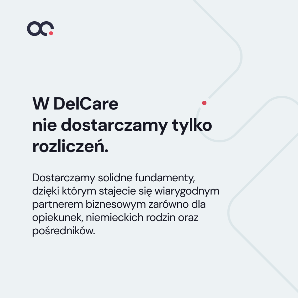 W DelCare nie dostarczamy tylko rozliczeń. Dostarczamy solidne fundamenty dzięki którym stajecie się wiarygodnym partnerem biznesowym zarówno dla opiekunek, niemieckich rodzin oraz pośredników.
